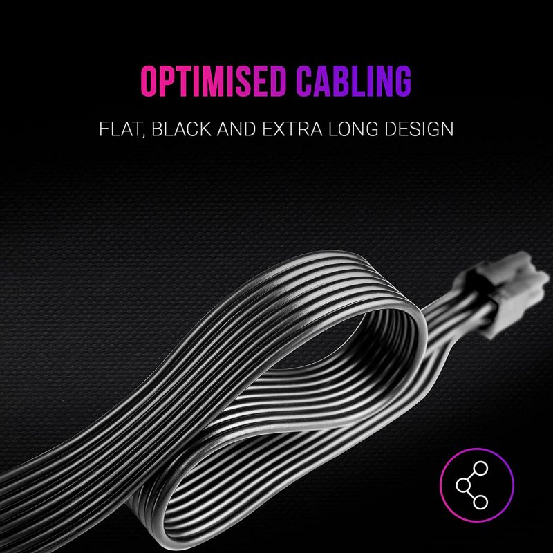 Les câbles du MPB750 sont plats, noirs et extra-longs : une combinaison de caractéristiques qui rend son installation plus facile et plus polyvalente que jamais dans tout type de boîtier. Construisez votre PC ultime dans une immense tour et profitez de vos jeux comme jamais auparavant.