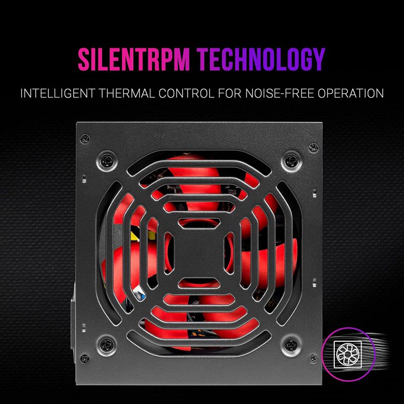 Équipé de la technologie SilentRPM qui garantit une performance silencieuse, le MPB750 a une conception thermique intelligente qui maintient le ventilateur à un niveau de bruit de 10 dB avec une charge de charge de 40 %, maintenant votre bloc d'alimentation à un faible niveau de bruit pendant ses performances.