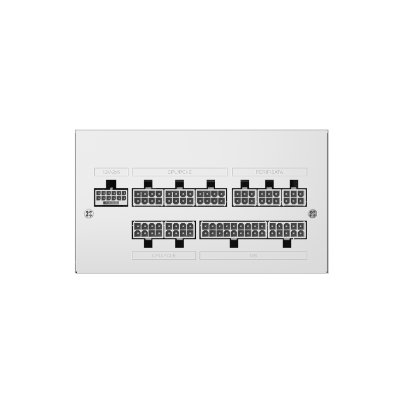 24pins (20+4), 4x PCI-E 6+2, 1x PCI-E 12+4, 6x SATA, 6x molex 4 broches, 2x 8pins (4+4) - ATX3.1 - PCI-E 5.1