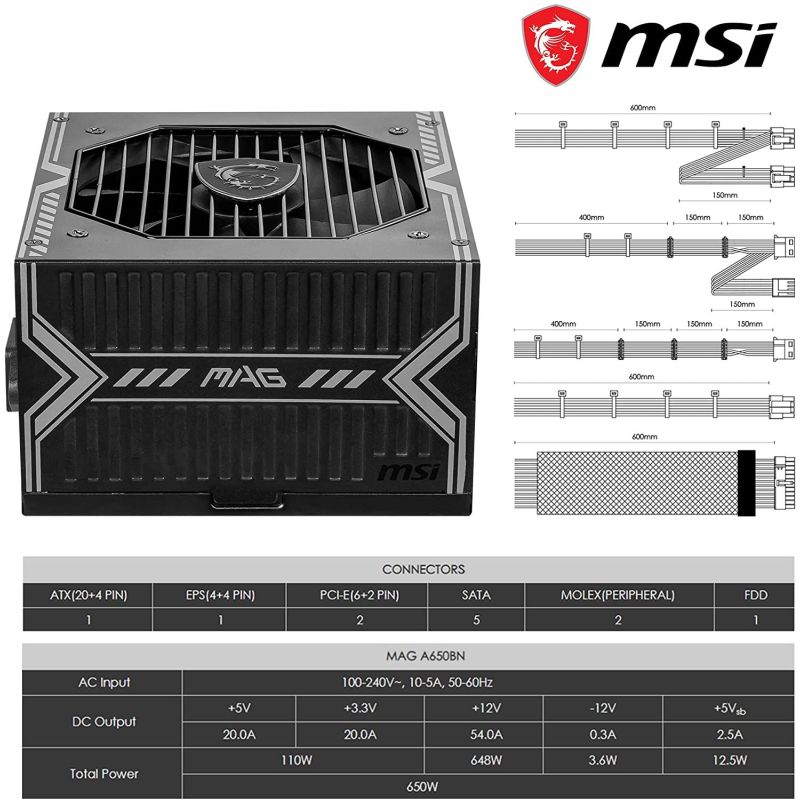 Alimentation 650w - MSI A650BN, 80+ Bronze, Bulk
