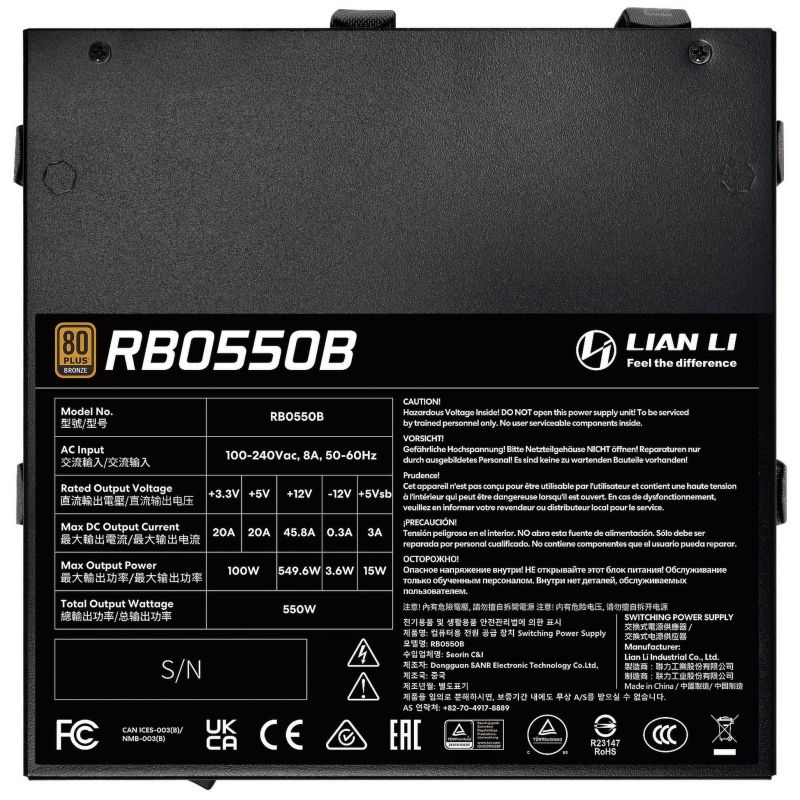 Alimentation 550W Lian Li RB0550B - 80+ Bronze - RB0550B.B EU