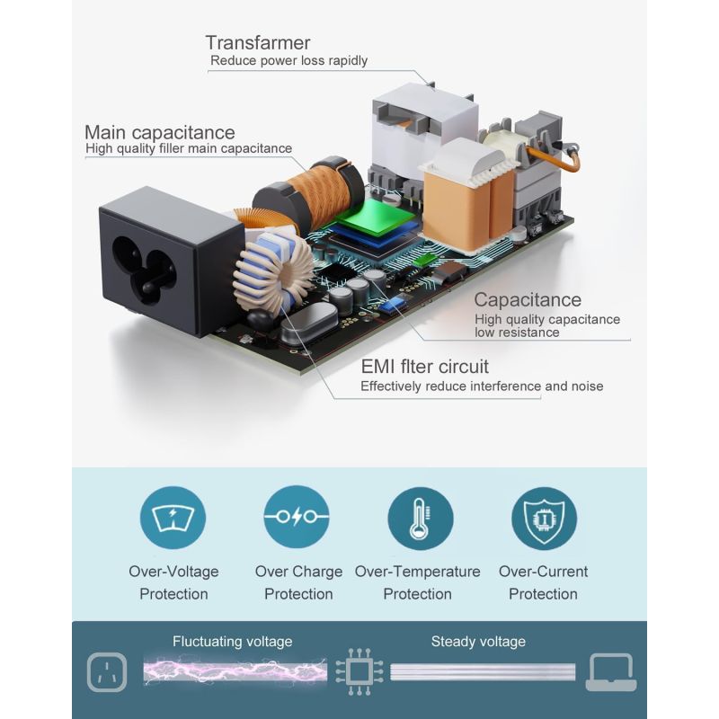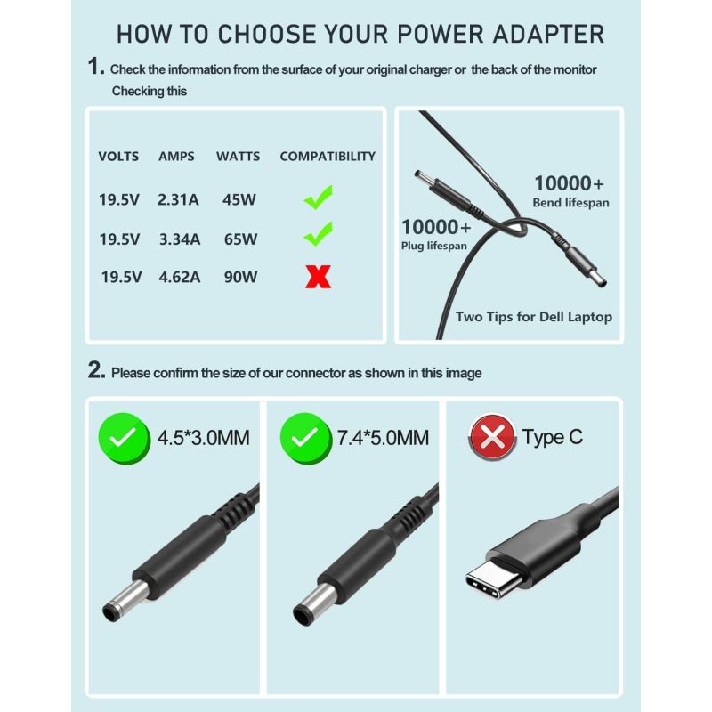 65w, 3.34A / connecteur 4.5x3.0mm et adaptateur 7.4x5.0mm