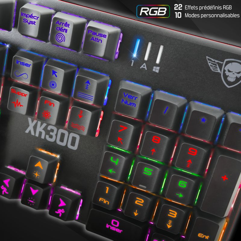 RGB GAMING ARENA 30 MODES : Bénéficiez d’un rétro-éclairage LED personnalisable ! Sélectionnez parmi l’un des 20 Modes [Gaming Lights] prédéfinis : Neon, Wave, Rainbow, Shadow.... Ou personnalisez votre propre rétro-éclairage : 10 emplacements sont entièrement personnalisables grâce à sa mémoire interne ! XPERT-K300 vous permet également de contrôler la luminosité, la vitesse des effets.