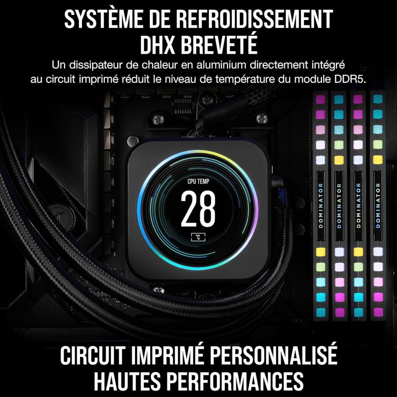 La DDR5 Corsair Vengeance emporte avec elle une régulation de tension lui permettant de s'adapter au système de manière dynamique.