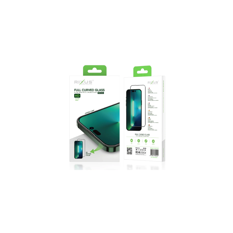 Rixus Pour iPhone 15 Verre trempé à bords incurvés