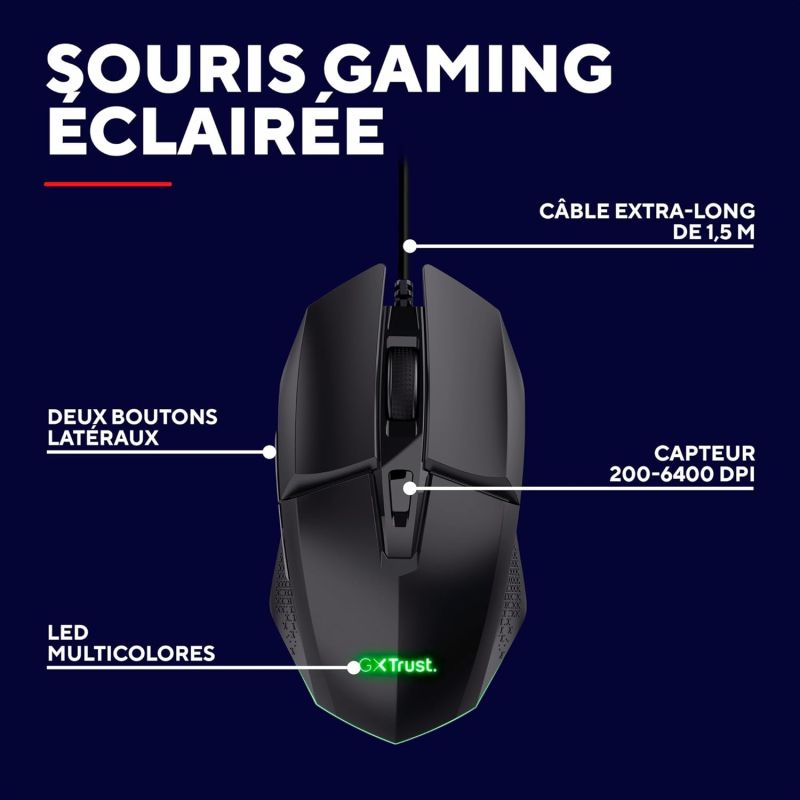 | Description: | Trust GXT 109 FELOX - Souris - éclairé, jeu - 6 boutons - filaire - USB - noir |