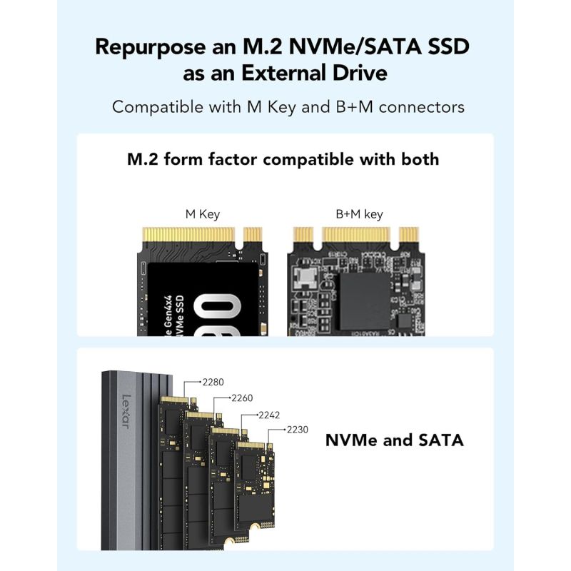 Boitier externe USB 3.2 Lexar E300 - NVMe M.2 Type 2280 Argent - LPAE300-RNBNG