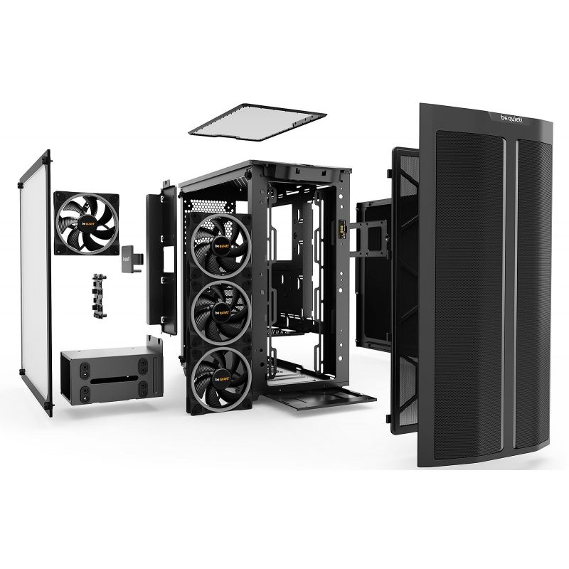 Grâce sa façade et à son panneau supérieur en mesh, le Pure Base 500 FX Black est le bon choix pour tous ceux qui recherchent des performances maximales, en particulier dans des systèmes watercoolés. Des filtres amovibles, en façade et sous le boîtier, protègent votre système de la poussière.
