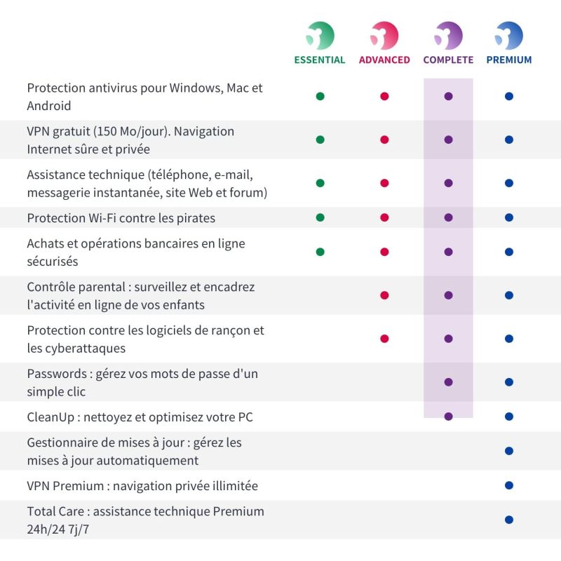 Cet antivirus de nouvelle génération maintient en sécurité un nombre illimité de périphériques : ordinateurs, smartphones, tablettes etc. :