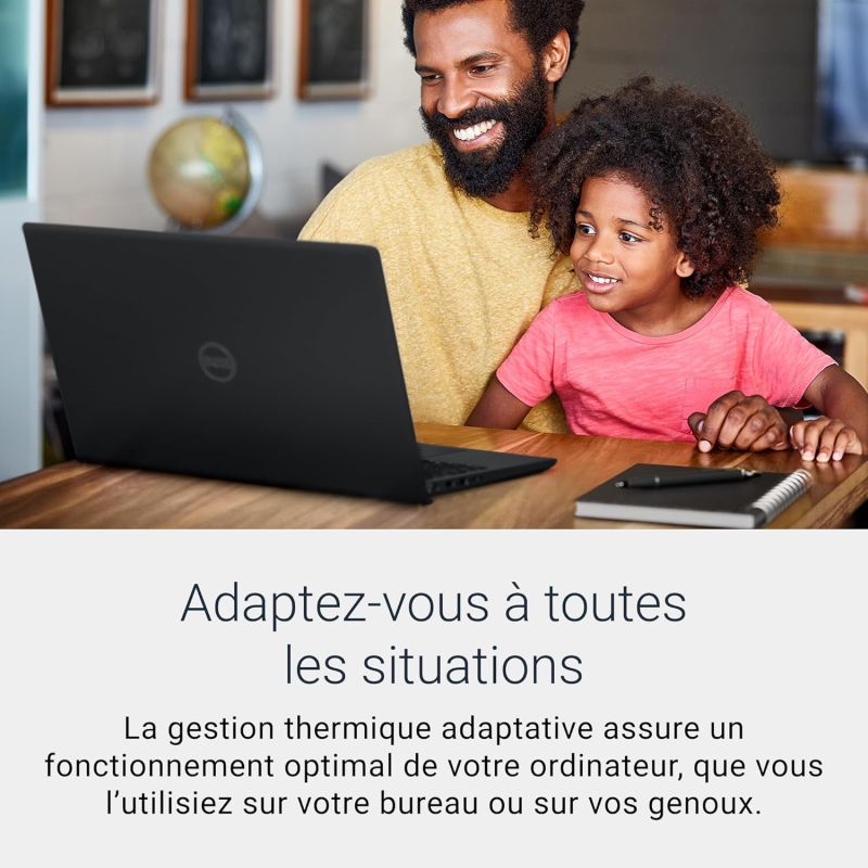 La gestion thermique adaptative assure un fonctionnement optimal de votre ordinateur, que vous l’utilisiez sur votre bureau ou sur vos genoux. Votre ordinateur Dell 15 ajuste intelligemment sa puissance et sa gestion thermique pour fonctionner harmonieusement.