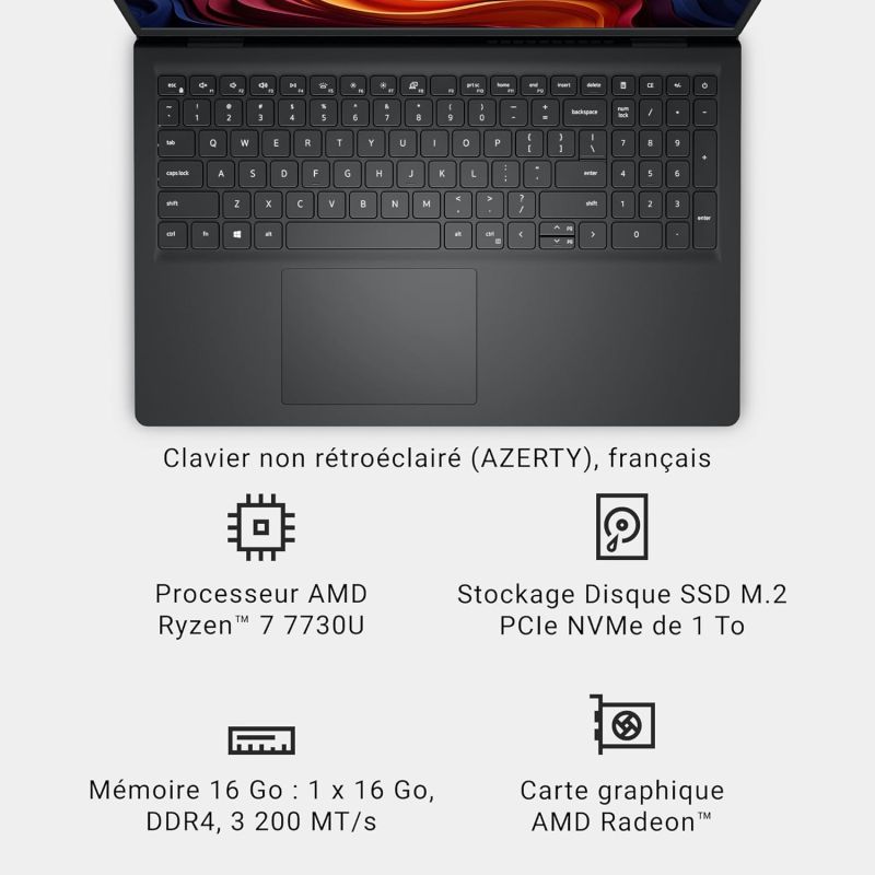 Un ordinateur portable de 15 pouces avec une caméra HD intégrée, un clavier ergonomique agrandi et les processeurs AMD Ryzen.