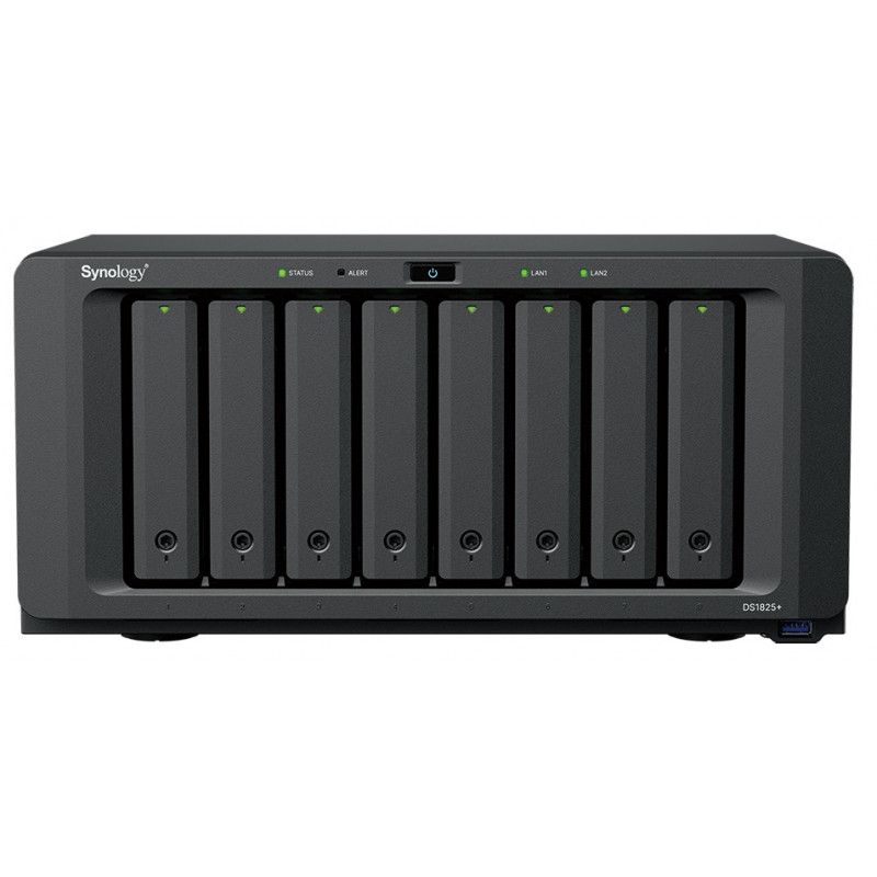 - 8 Baies - AMD Ryzen V1500B - 8 GB DDR4 - 2 x Port LAN RJ-45 2.5GbE - 3 x Ports USB 3.2 Gen 1 - 2 x M.2 NVMe SSD Slots - Compatible HDD WD et Seagate, a partir de DSM 7.3