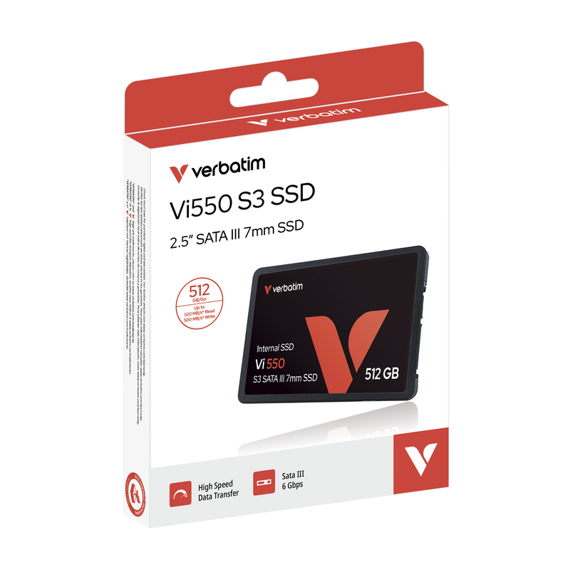 Les disques à circuits intégrés Verbatim 2,5 pouces SATA III 7 mm peuvent revigorer les performances de votre système. Dotés de la toute nouvelle technologue 3D NAND, ils constituent le moyen parfait pour la mise à niveau à partir d’un disque dur ou d’un disque SSD moins récent. Le disque Vi550 est doté d'un contrôleur supérieur offrant une meilleure fiabilité, des capacités plus élevées et des débits en lecture/écriture plus rapides.