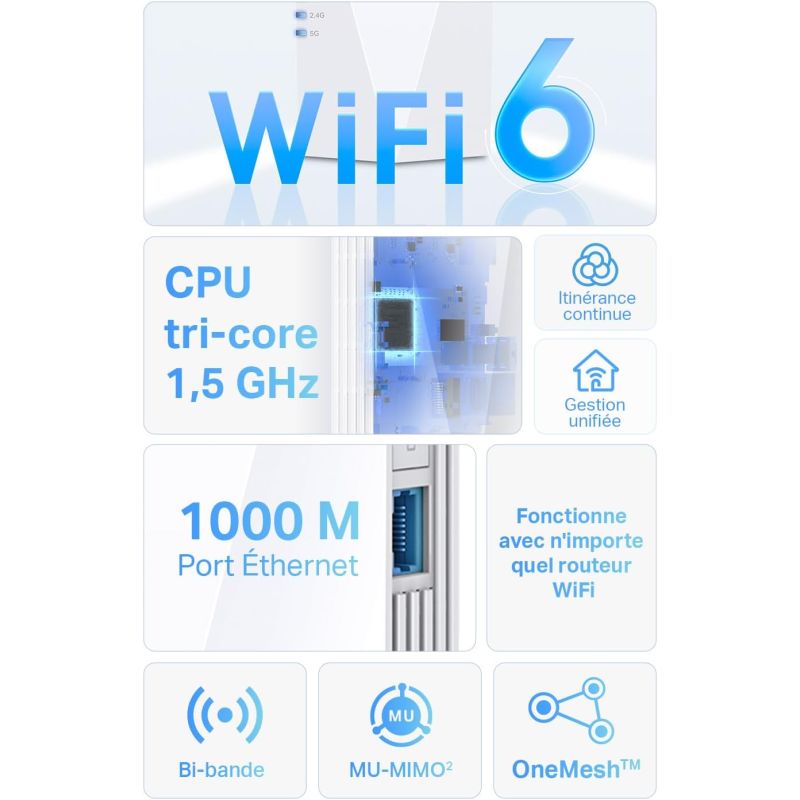 | Puissance de transmission | CE: 2.4GHz ≤20dBm, 5GHz ≤30dBm |